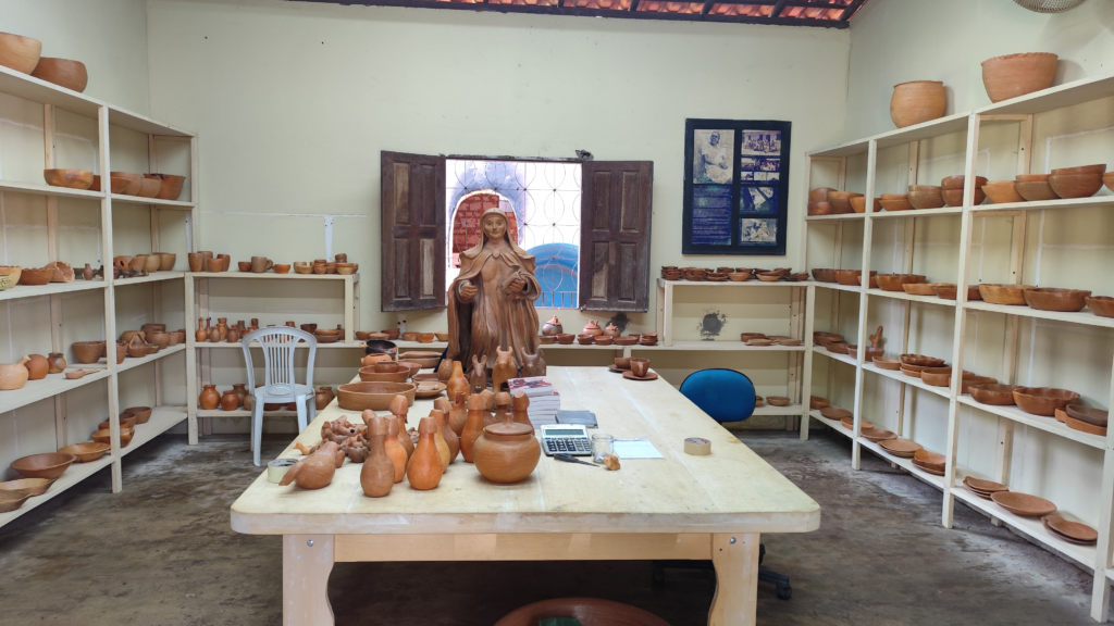 Originado por populações negras que permaneceram na região após o fim da escravidão, o quilombo de Itamatatiua se organiza em torno do trabalho coletivo. Um exemplo disso é o artesanato em cerâmica, saber tradicional transmitido entre gerações de mulheres. Nesse território, a espiritualidade é marcada pela união de crenças: a devoção a Santa Teresa d’Ávila convive com as raízes africanas, onde o toque dos tambores e os rituais ancestrais ganham espaço dentro das festas cristãs. Essa mistura mostra uma fé que se mantém viva tanto no altar quanto no fazer cotidiano da comunidade.